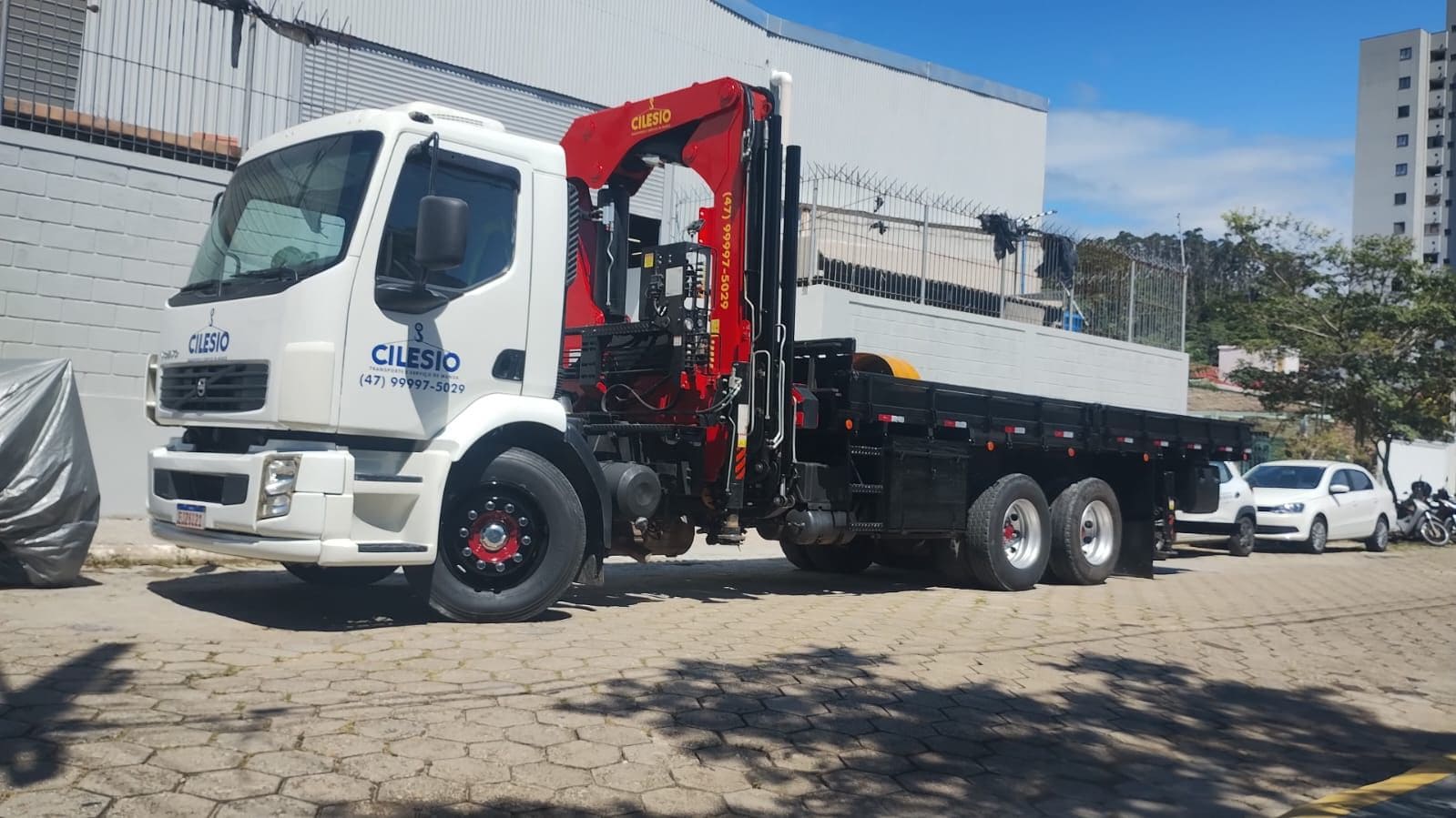 Munck com capacidade de 9 toneladas e altura máxima de 20 metros. Carroceria de 6,7 metros de comprimento.